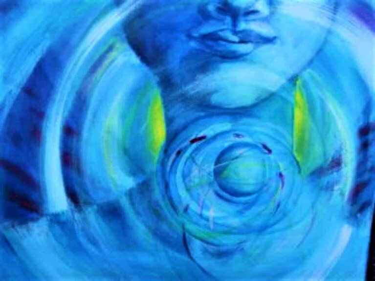 This light blue chakra of expression, is connected physically to the throat, neck, ears, arms and associated to the thyroid gland and to the gift of clairaudience. It is the center of communication, home to self expression and serves as the seat of emotions.