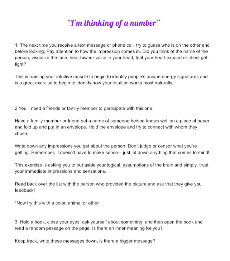 There are some fun intuitive games to play on apps where you can check and train your intuition. Here is a link to one called Extra Sense – Intuition Games.